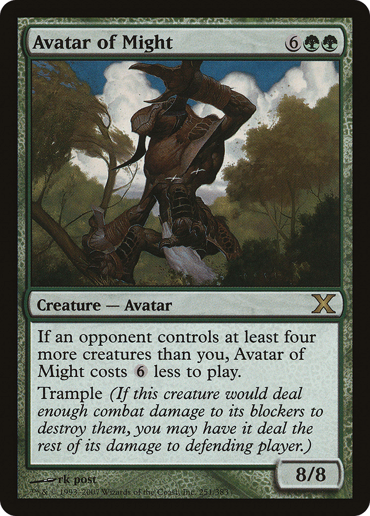 If an opponent controls at least four more creatures than you, this spell costs {6} less to cast.