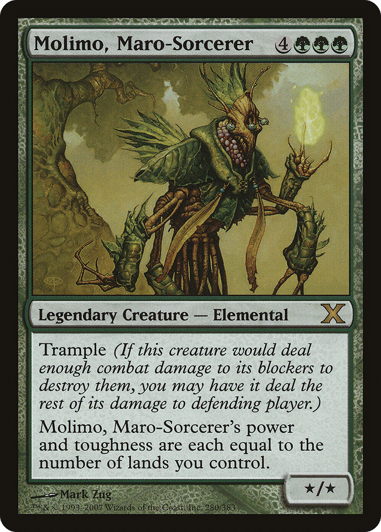 Molimo’s power and toughness are each equal to the number of lands you control.
