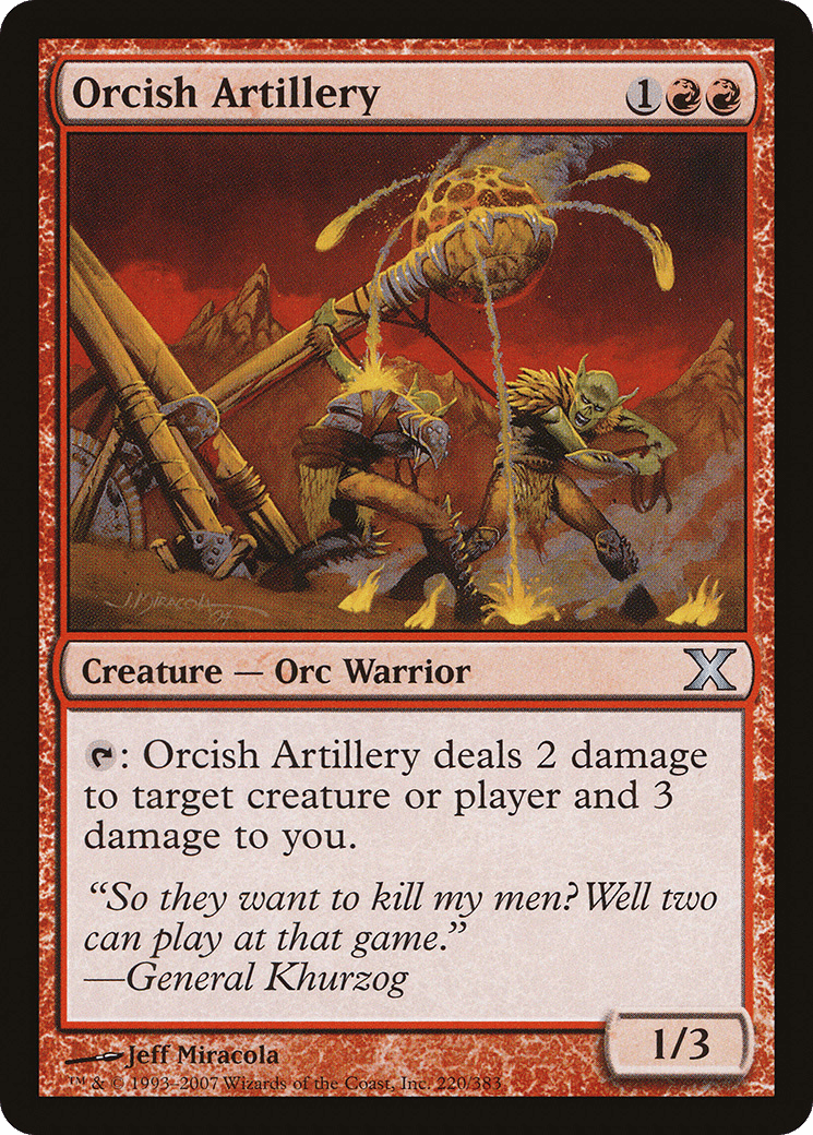 {T}: This creature deals 2 damage to any target and 3 damage to you.