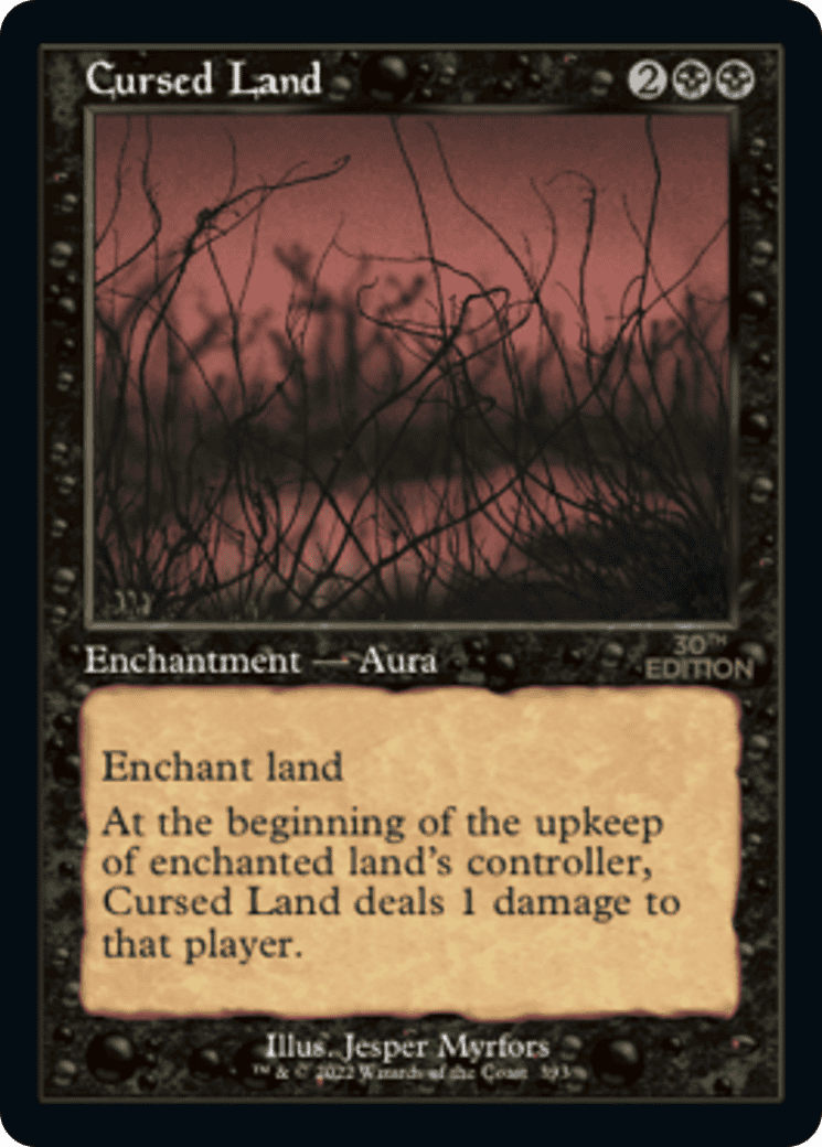 Enchant land At the beginning of the upkeep of enchanted land’s controller, this Aura deals 1 damage to that player.