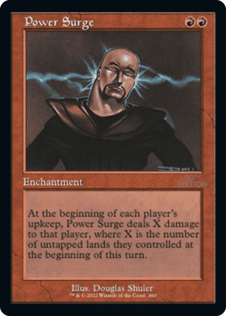 At the beginning of each player’s upkeep, this enchantment deals X damage to that player, where X is the number of untapped lands they controlled at the beginning of this turn.