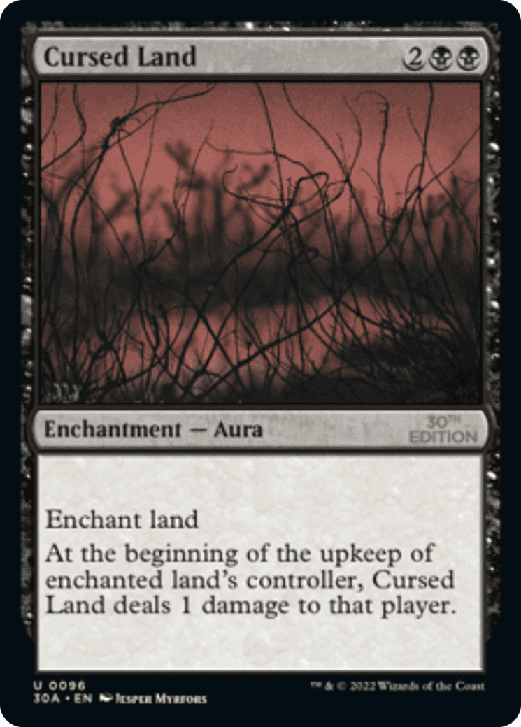 Enchant land At the beginning of the upkeep of enchanted land’s controller, this Aura deals 1 damage to that player.