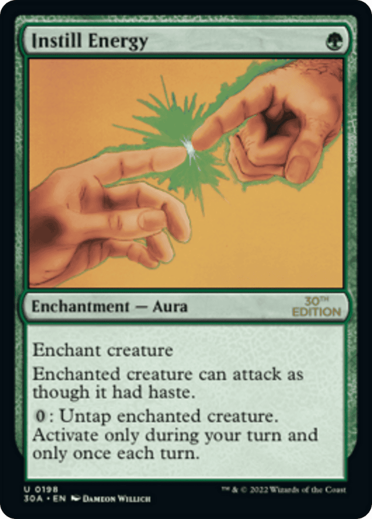 {0}: Untap enchanted creature. Activate only during your turn and only once each turn.