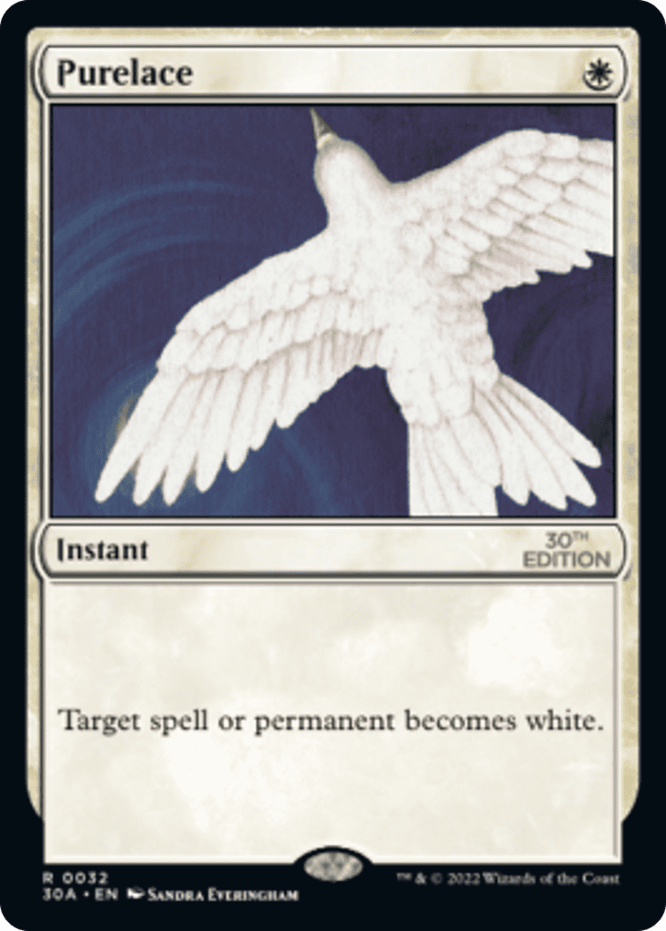 Target spell or permanent becomes white. (Mana symbols on that permanent remain unchanged.)