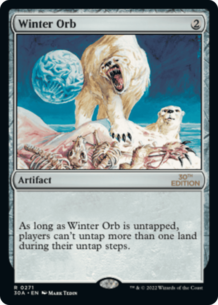 As long as this artifact is untapped, players can’t untap more than one land during their untap steps.