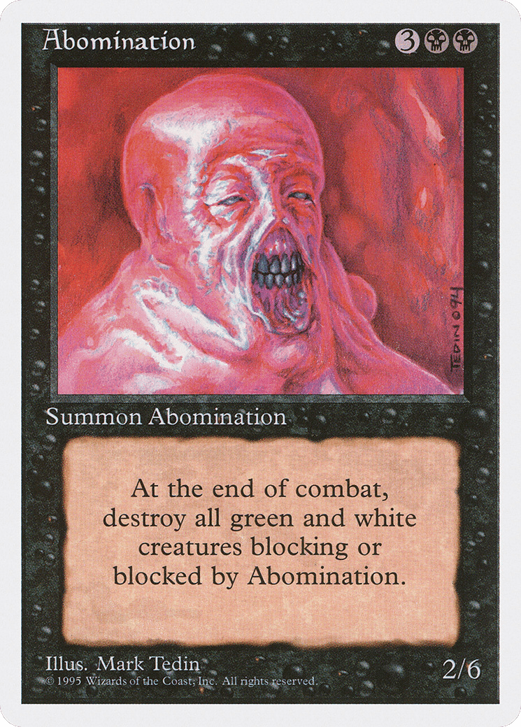 Whenever this creature blocks or becomes blocked by a green or white creature, destroy that creature at end of combat.
