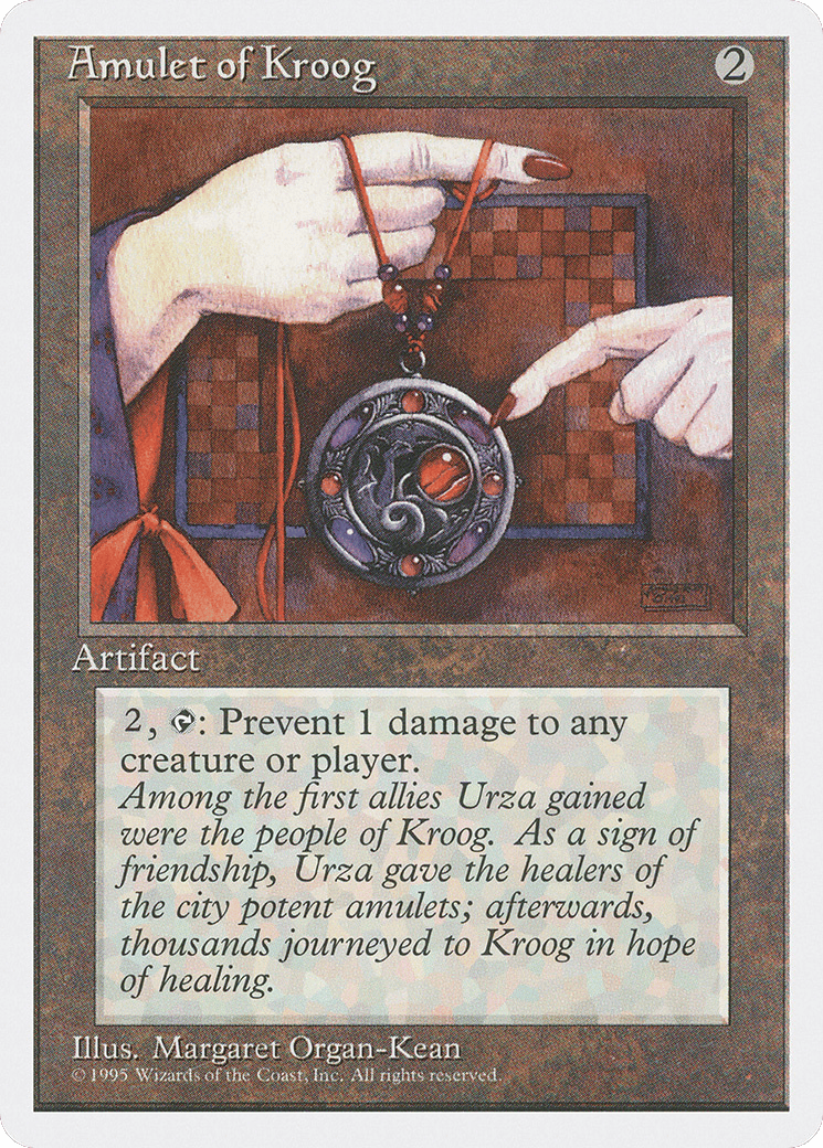 Among the first allies Urza gained were the people of Kroog. As a sign of friendship, Urza gave the healers of the city potent amulets; afterwards, thousands journeyed to Kroog in hope of healing.
