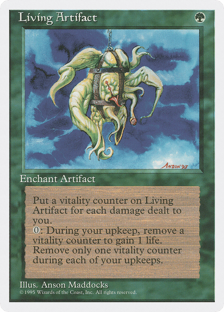 Whenever you’re dealt damage, put that many vitality counters on this Aura.