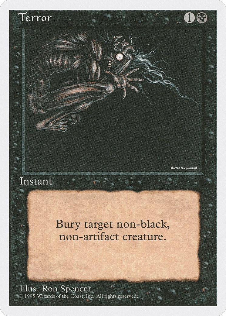 Destroy target nonartifact, nonblack creature. It can’t be regenerated.