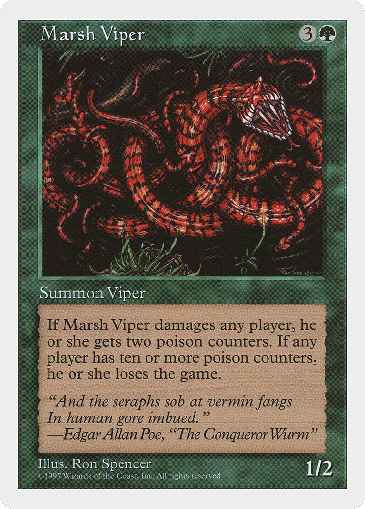 Whenever this creature deals damage to a player, that player gets two poison counters. (A player with ten or more poison counters loses the game.)