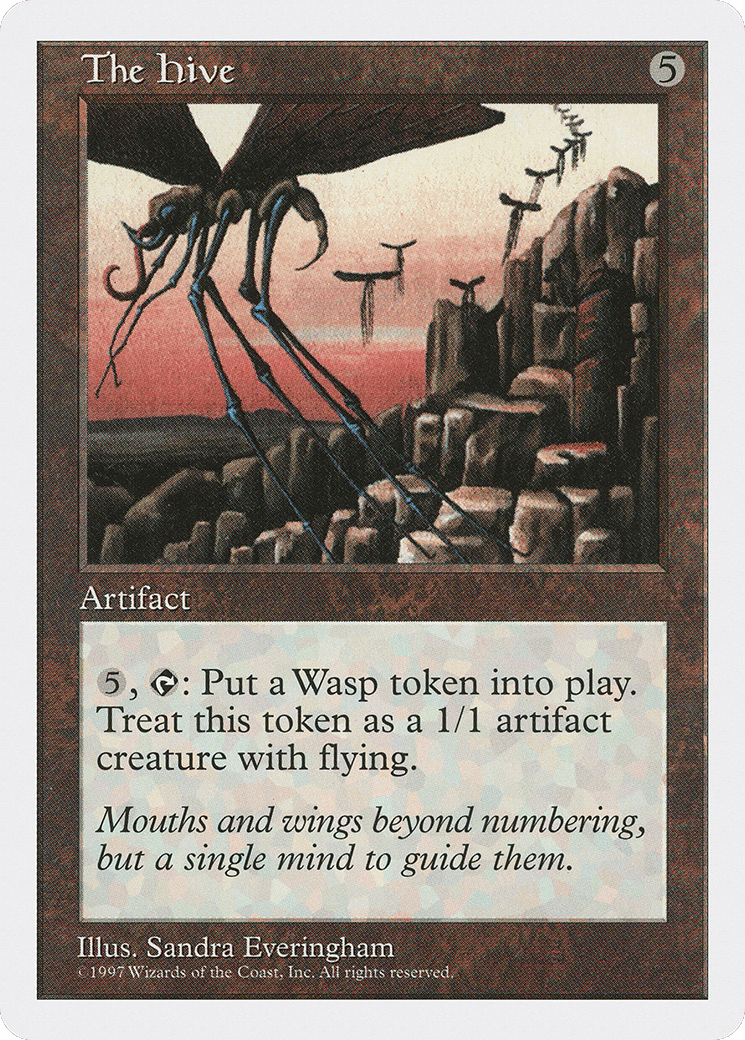 {5}, {T}: Create a 1/1 colorless Insect artifact creature token with flying named Wasp. (It can’t be blocked except by creatures with flying or reach.)
