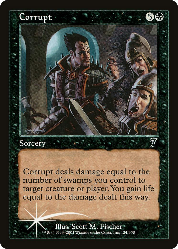 Corrupt deals damage to any target equal to the number of Swamps you control. You gain life equal to the damage dealt this way.