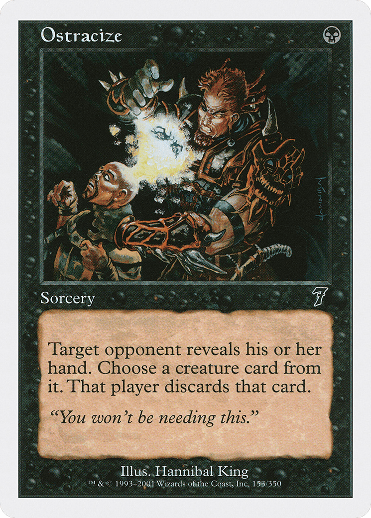 Target opponent reveals their hand. You choose a creature card from it. That player discards that card.