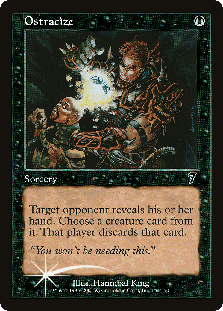 Target opponent reveals their hand. You choose a creature card from it. That player discards that card.