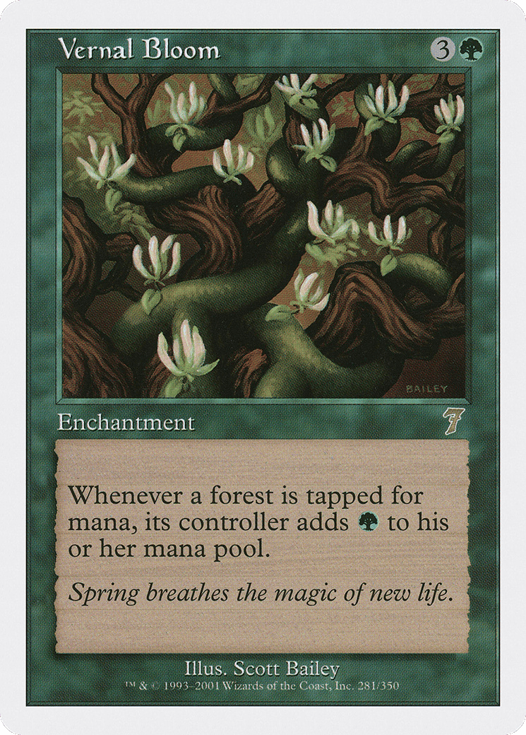 Whenever a Forest is tapped for mana, its controller adds an additional {G}.