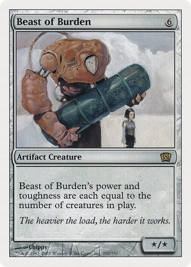 Beast of Burden’s power and toughness are each equal to the number of creatures on the battlefield.
