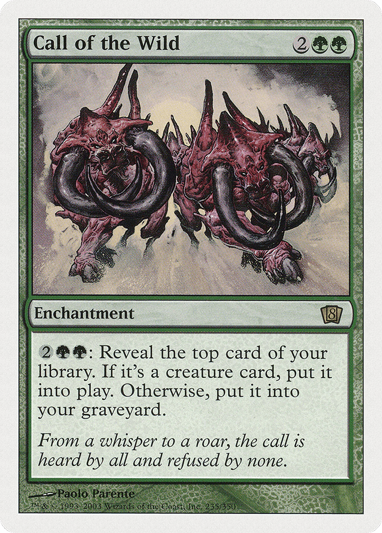 {2}{G}{G}: Reveal the top card of your library. If it’s a creature card, put it onto the battlefield. Otherwise, put it into your graveyard.