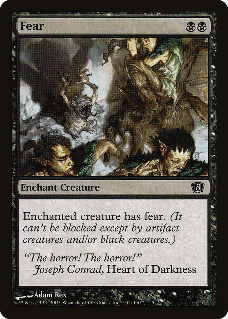 Enchanted creature has fear. (It can’t be blocked except by artifact creatures and/or black creatures.)