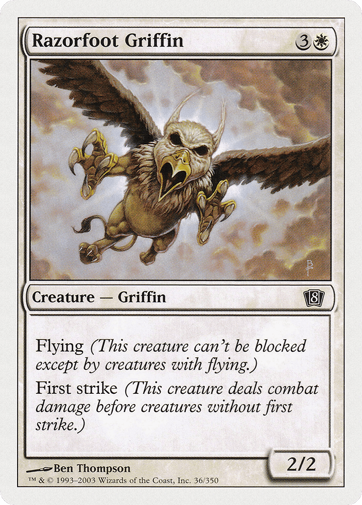 Flying (This creature can’t be blocked except by creatures with flying or reach.) First strike (This creature deals combat damage before creatures without first strike.)