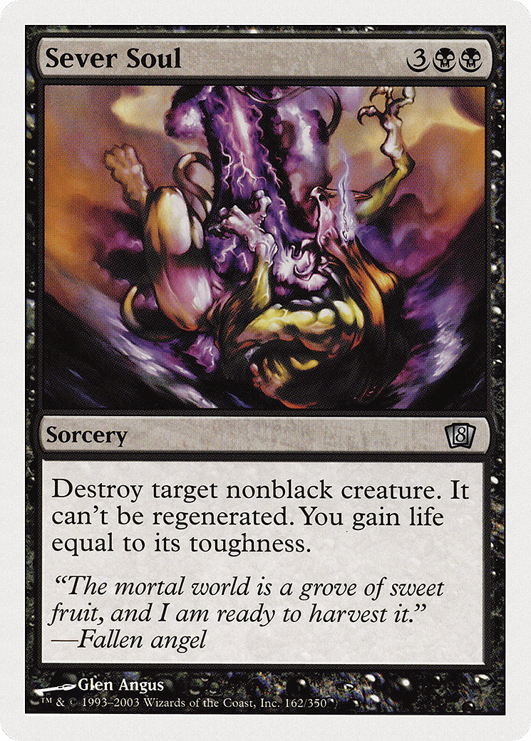 Destroy target nonblack creature. It can’t be regenerated. You gain life equal to its toughness.