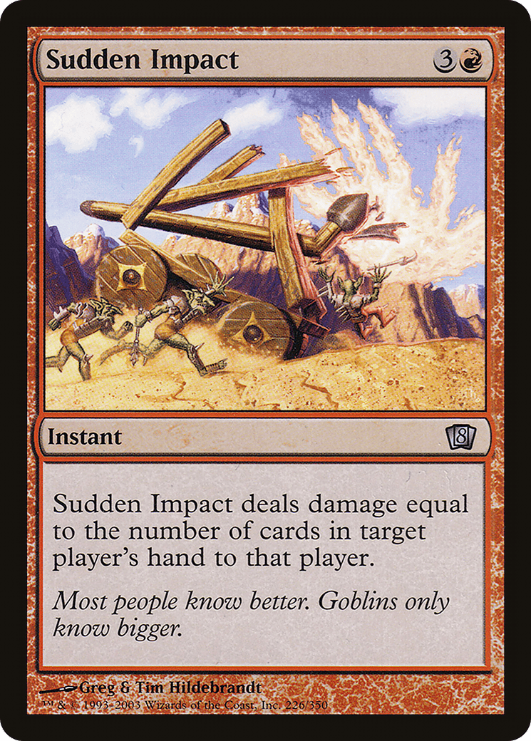Sudden Impact deals damage to target player equal to the number of cards in that player’s hand.
