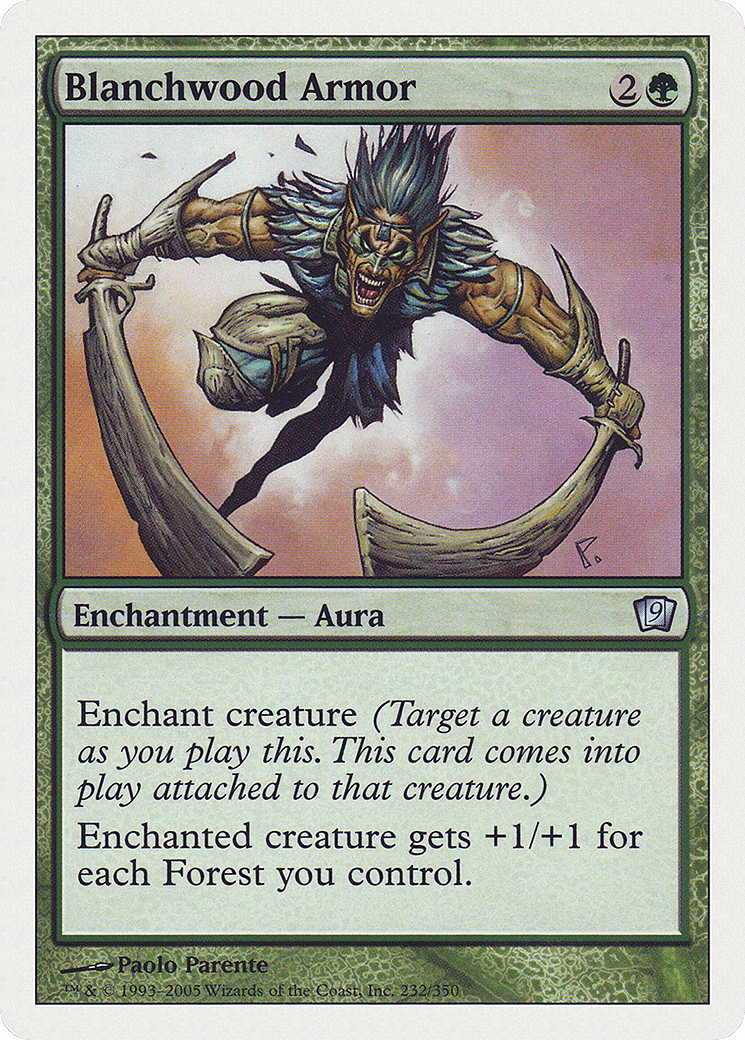Enchant creature Enchanted creature gets +1/+1 for each Forest you control.