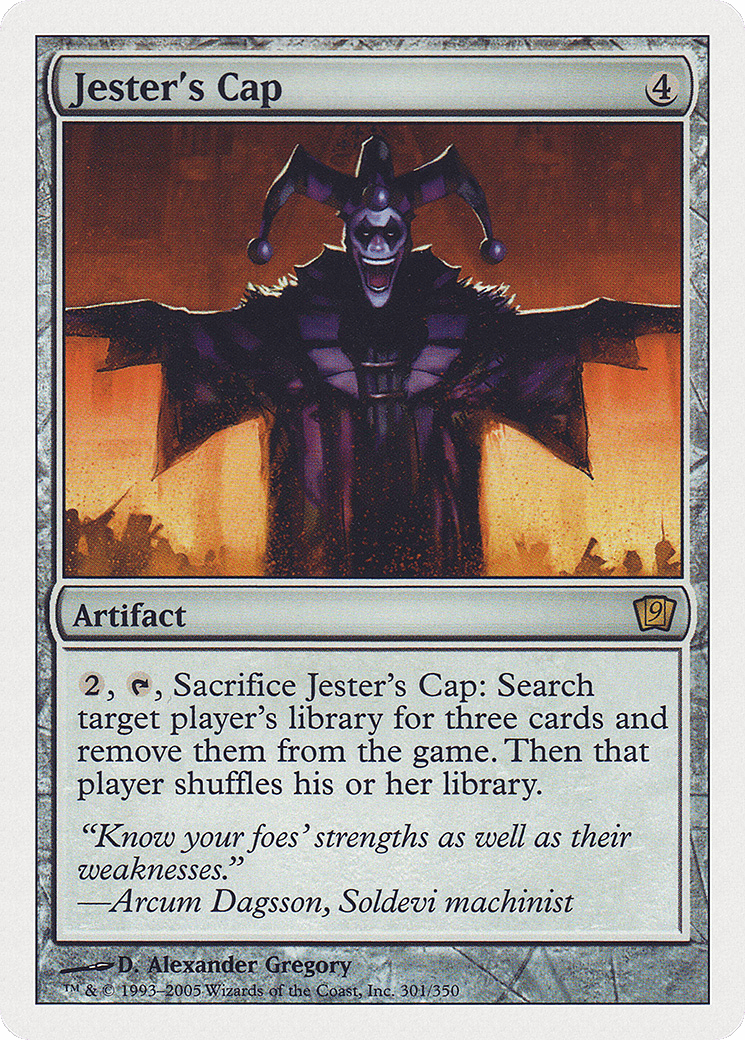 {2}, {T}, Sacrifice this artifact: Search target player’s library for three cards and exile them. Then that player shuffles.