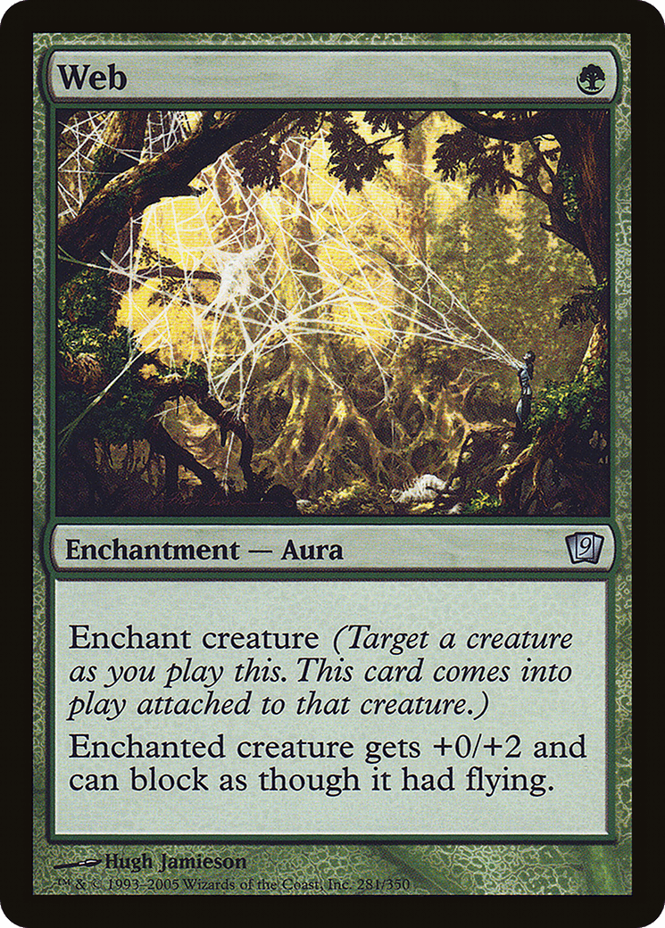 Enchant creature (Target a creature as you cast this. This card enters attached to that creature.) Enchanted creature gets +0/+2 and has reach. (It can block creatures with flying.)