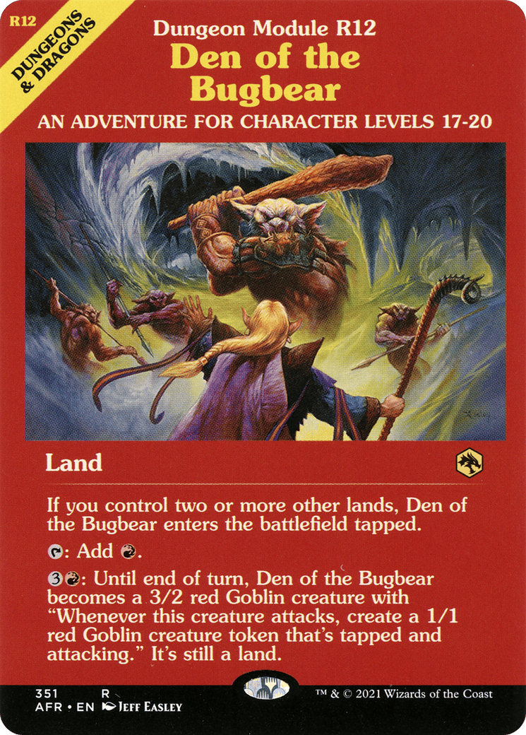 {3}{R}: Until end of turn, this land becomes a 3/2 red Goblin creature with “Whenever this creature attacks, create a 1/1 red Goblin creature token that’s tapped and attacking.