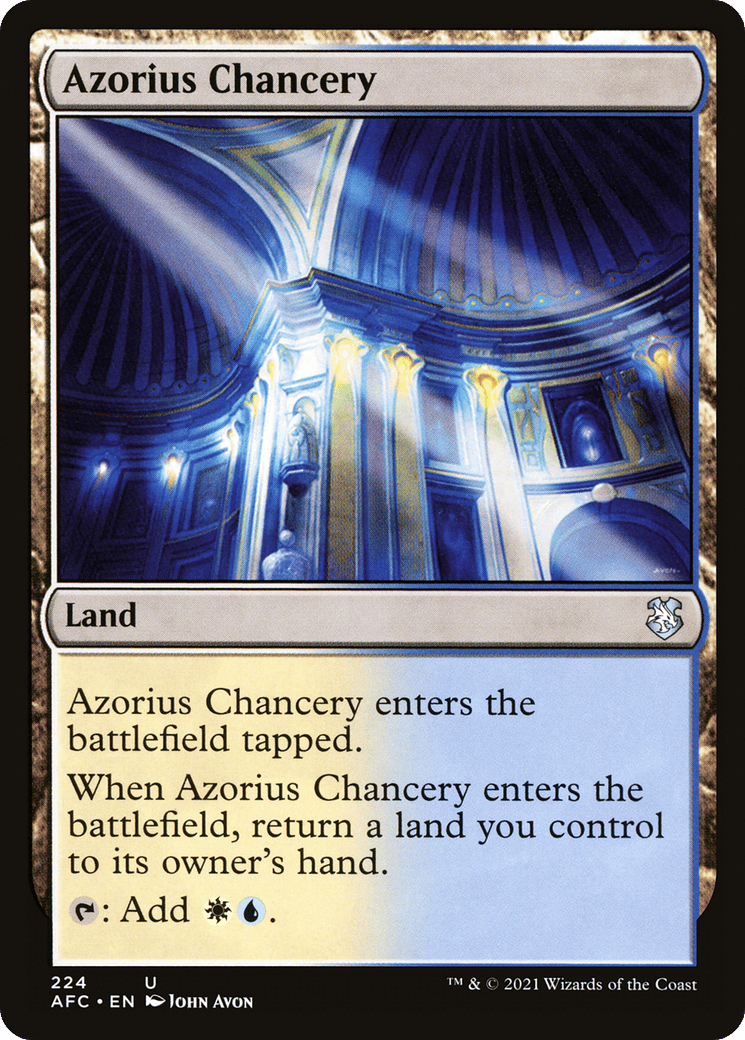 This land enters tapped. When this land enters, return a land you control to its owner’s hand. {T}: Add {W}{U}.