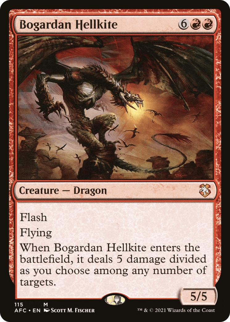 Flash Flying When this creature enters, it deals 5 damage divided as you choose among any number of targets.