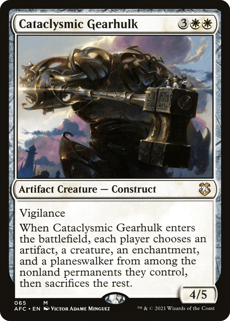 When this creature enters, each player chooses an artifact, a creature, an enchantment, and a planeswalker from among the nonland permanents they control, then sacrifices the rest.