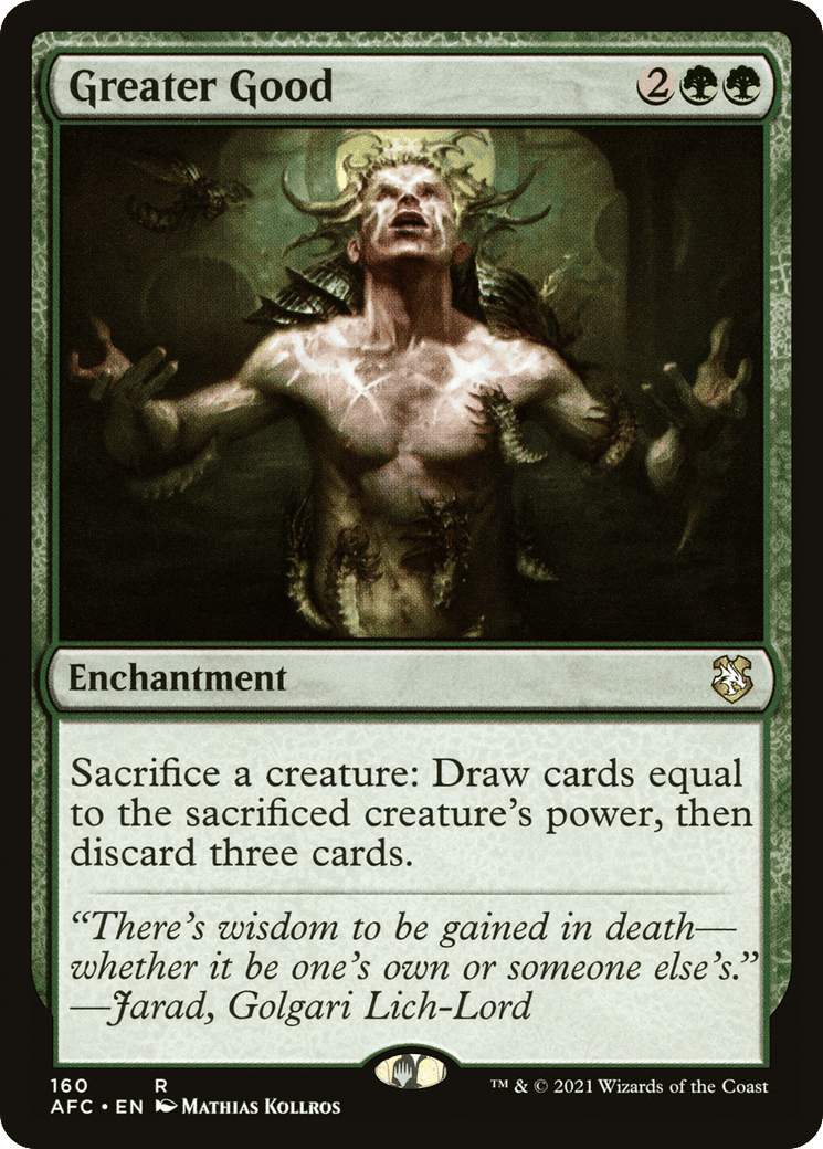 Sacrifice a creature: Draw cards equal to the sacrificed creature’s power, then discard three cards.