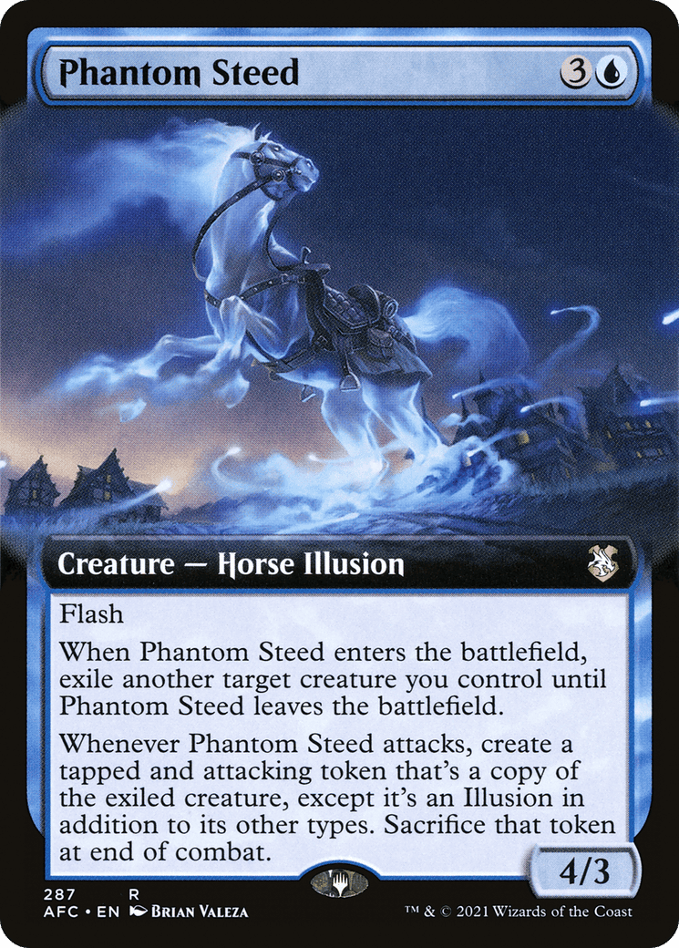 Whenever this creature attacks, create a tapped and attacking token that’s a copy of the exiled card, except it’s an Illusion in additio