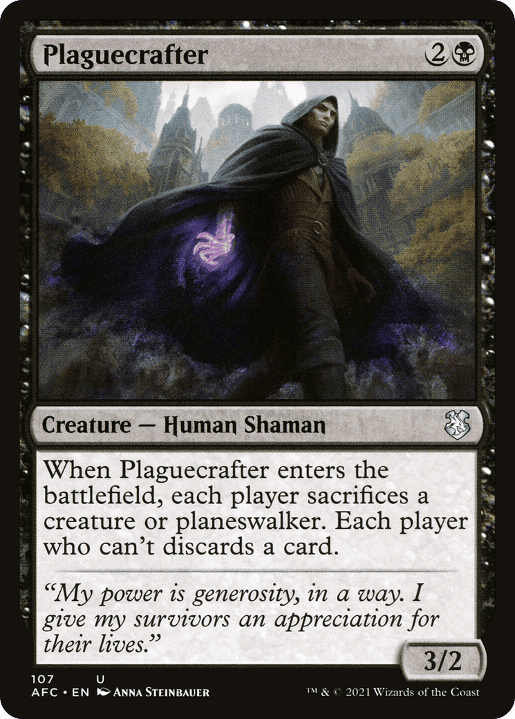 When this creature enters, each player sacrifices a creature or planeswalker of their choice. Each player who can’t discards a card.