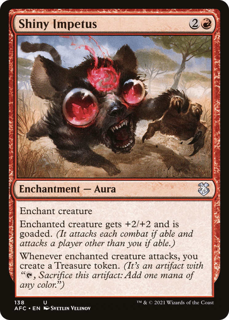 Whenever enchanted creature attacks, you create a Treasure token. (It’s an artifact with “{T}, Sacrifice this token