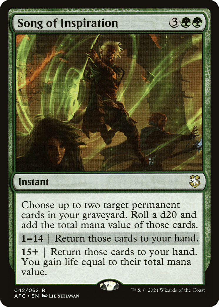 Choose up to two target permanent cards in your graveyard. Roll a d20 and add the total mana value of those cards.