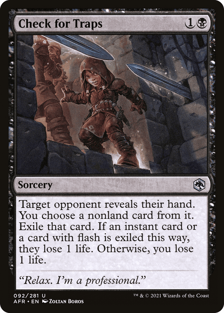 Target opponent reveals their hand. You choose a nonland card from it. Exile that card. If an instant card or a card with flash is exiled this way, they lose 1 life. Otherwise, you lose 1 life.