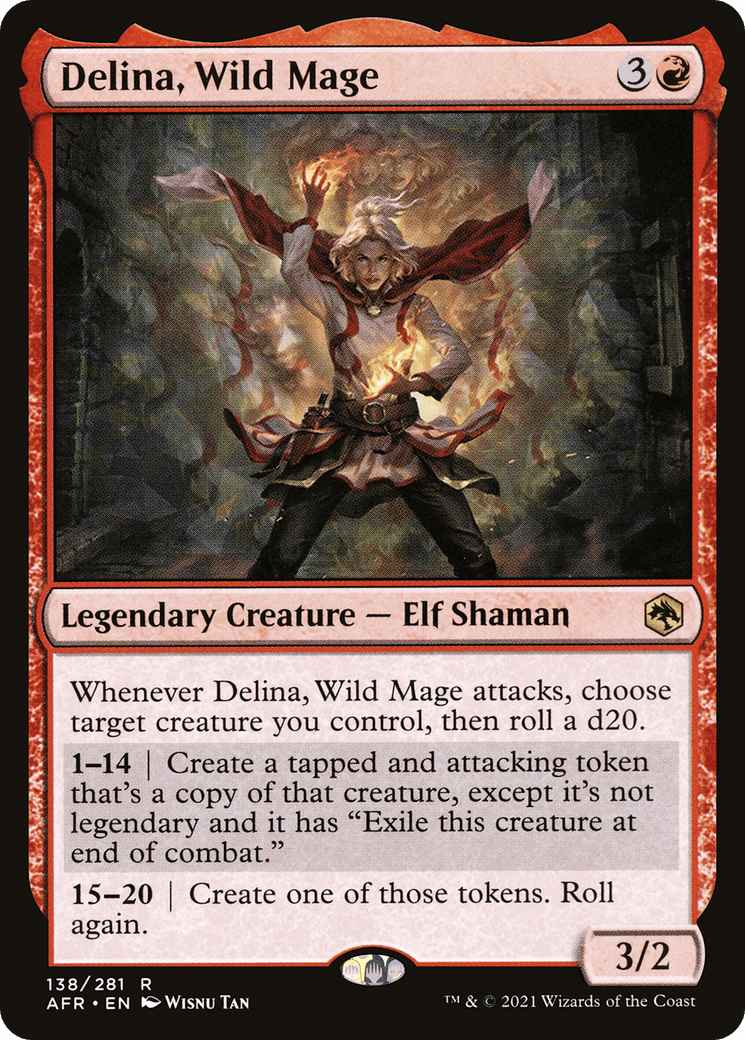 Whenever Delina attacks, choose target creature you control, then roll a d20.