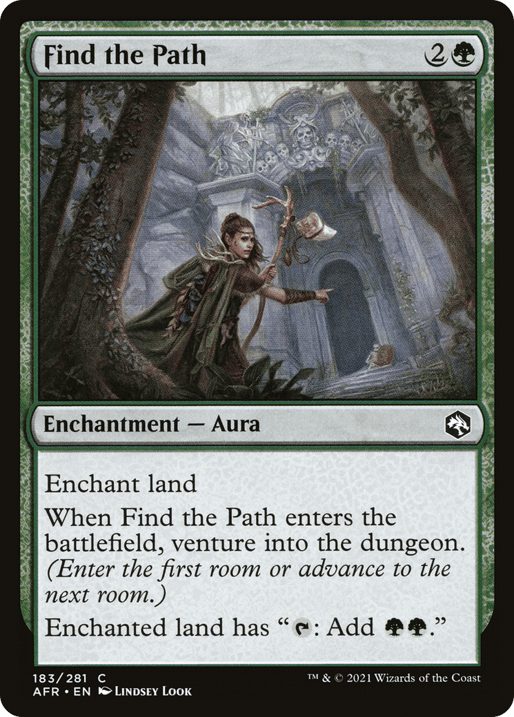 When this Aura enters, venture into the dungeon. (Enter the first room or advance to the next room.)