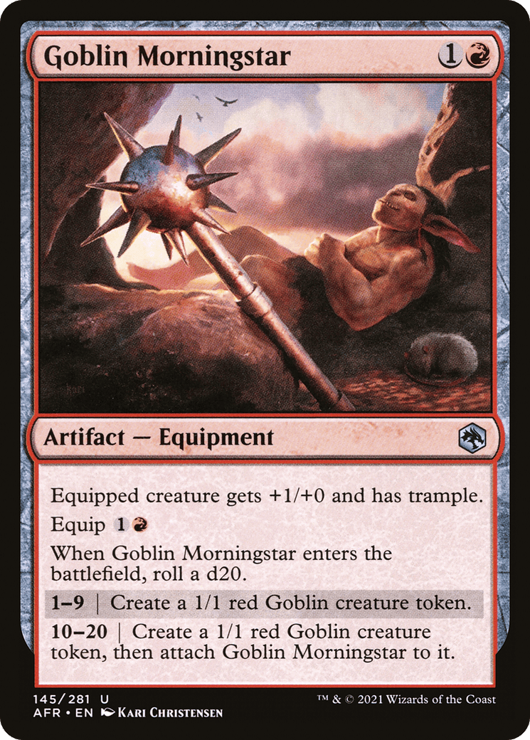 10-20 | Create a 1/1 red Goblin creature token, then attach this Equipment to it.