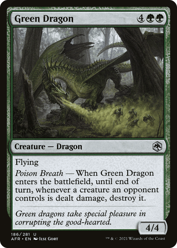 Poison Breath – When this creature enters, until end of turn, whenever a creature an opponent controls is dealt damage, destroy it.
