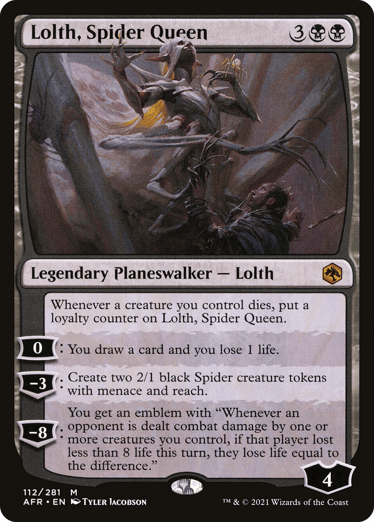 Whenever a creature you control dies, put a loyalty counter on Lolth.