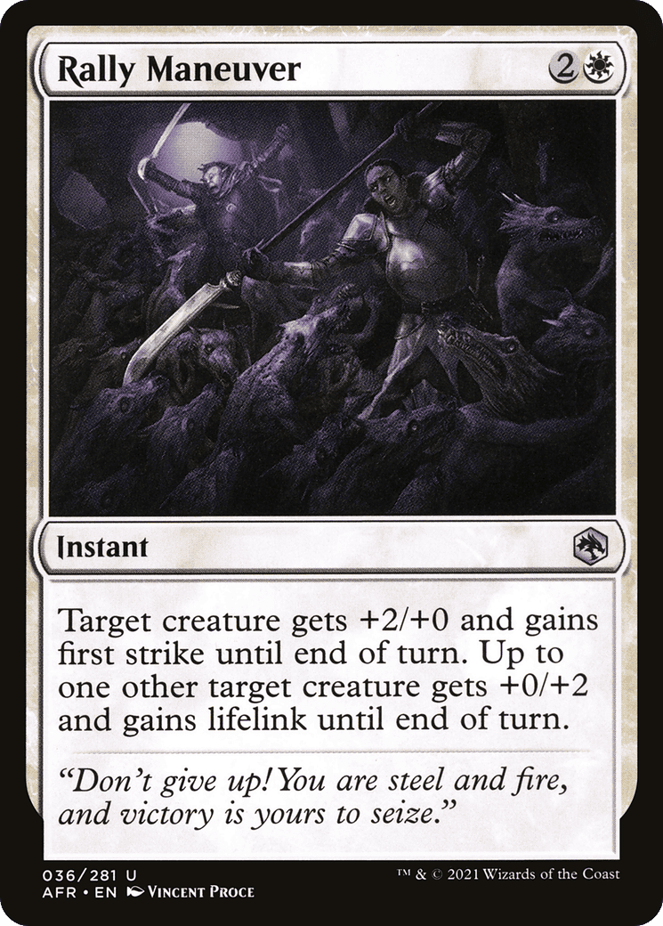 Target creature gets +2/+0 and gains first strike until end of turn. Up to one other target creature gets +0/+2 and gains lifelink until end of turn.