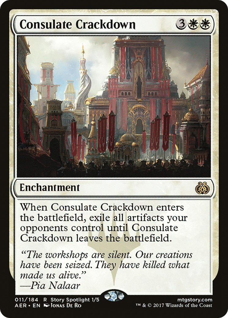 When this enchantment enters, exile all artifacts your opponents control until this enchantment leaves the battlefield.