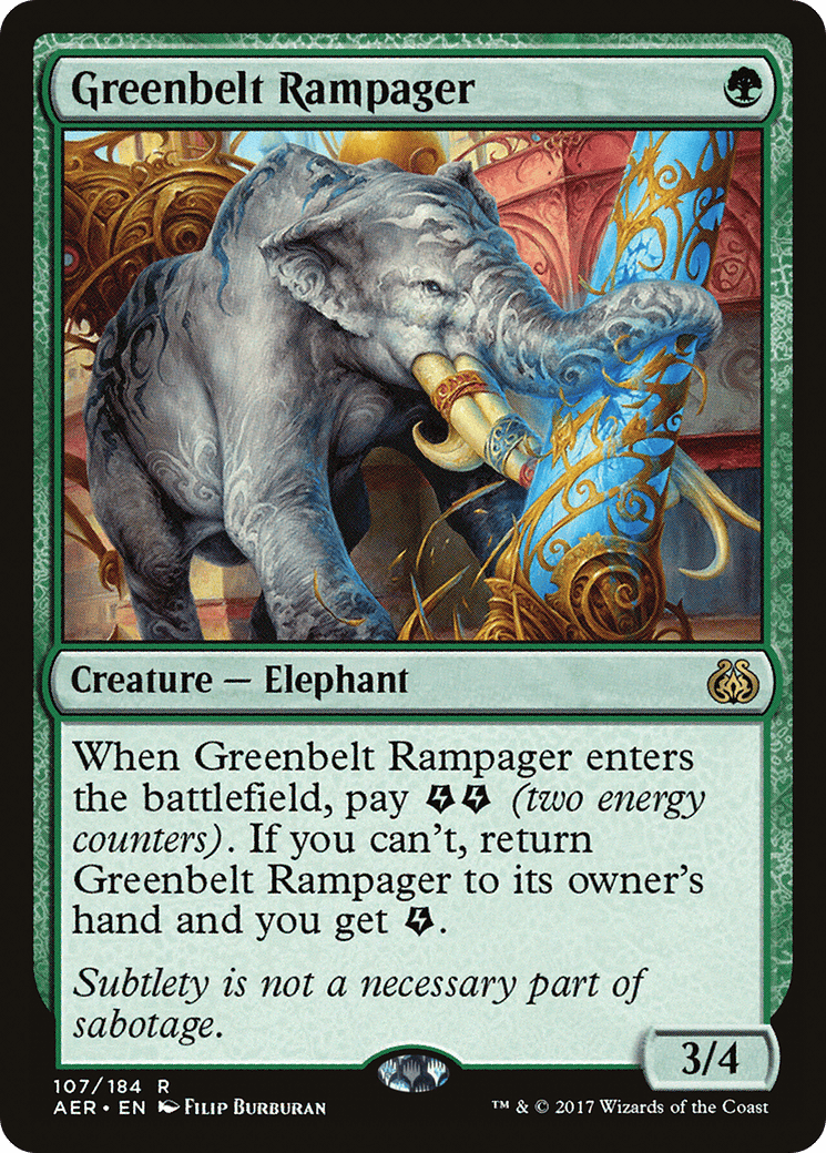 When this creature enters, pay {E}{E} (two energy counters). If you can’t, return this creature to its owner’s hand and you get {E}.