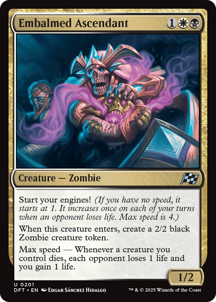Start your engines! (If you have no speed, it starts at 1. It increases once on each of your turns when an opponent loses life. Max speed is 4.)