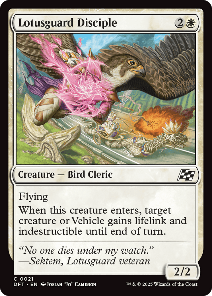 When this creature enters, target creature or Vehicle gains lifelink and indestructible until end of turn.