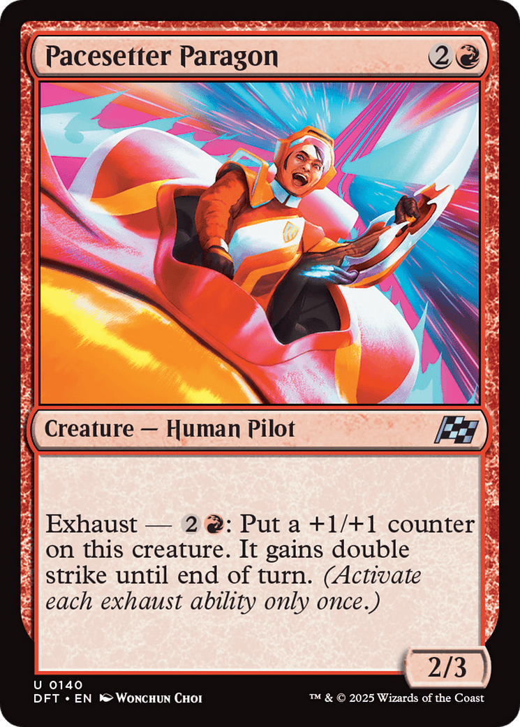 Exhaust – {2}{R}: Put a +1/+1 counter on this creature. It gains double strike until end of turn. (Activate each exhaust ability only once.)