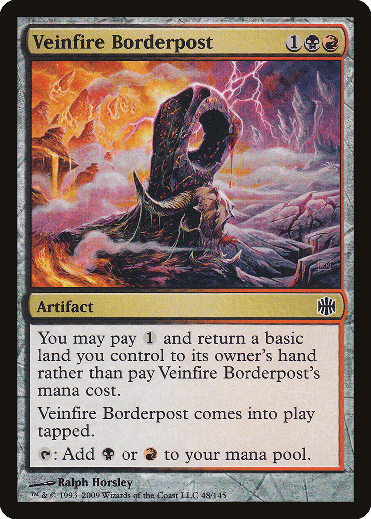 You may pay {1} and return a basic land you control to its owner’s hand rather than pay this spell’s mana cost. This artifact enters tapped. {T}: Add {B} or {R}.